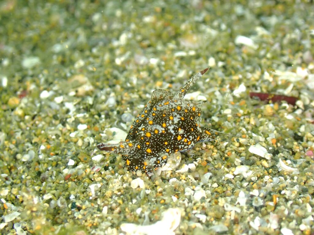 岩場は綺麗でしたが、砂地はもやっとした感じの水中でした。
